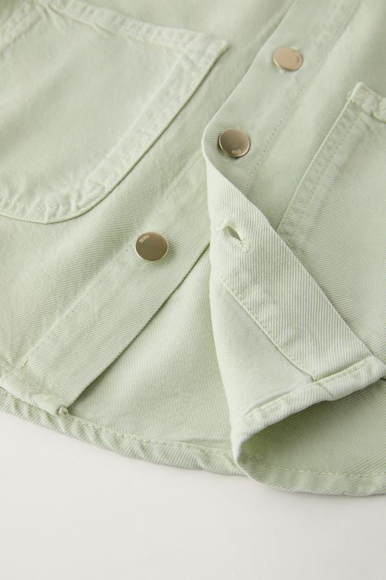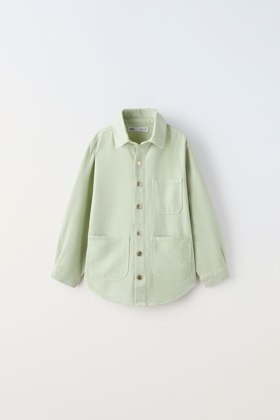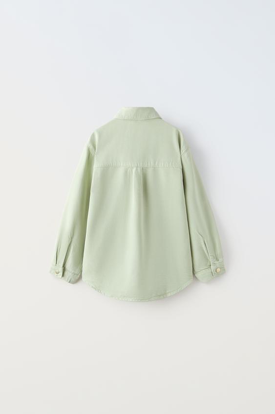 ZARA КУРТКА-РУБАШКА СТРУЯЩЕГОСЯ КРОЯ, СВЕТЛО-ЗЕЛЕНЫЙ