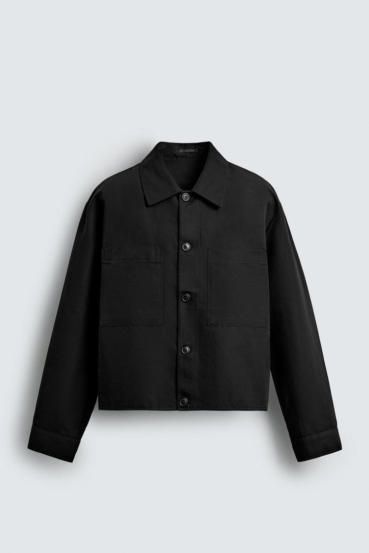 ZARA КУРТКА-РУБАШКА СВОБОДНОГО КРОЯ С КАРМАНАМИ, ЧЕРНЫЙ