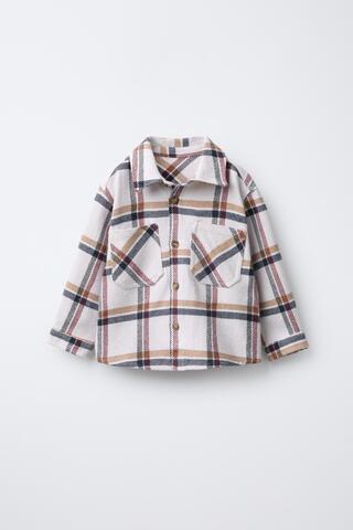 ZARA КУРТКА-РУБАШКА В КЛЕТКУ, ЭКРЮ