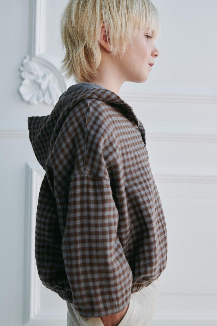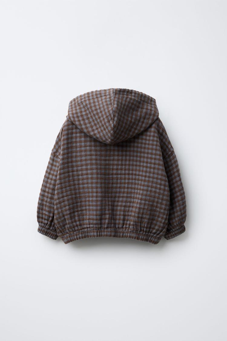 ZARA КУРТКА-РУБАШКА В КЛЕТКУ С КАПЮШОНОМ, КОРИЧНЕВЫЙ