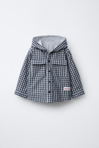 ZARA КУРТКА-РУБАШКА В КЛЕТКУ С КАПЮШОНОМ, СИНИЙ