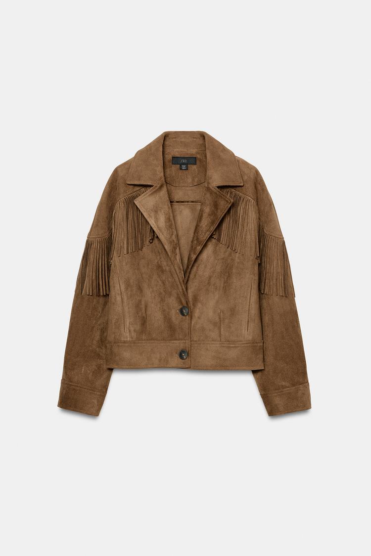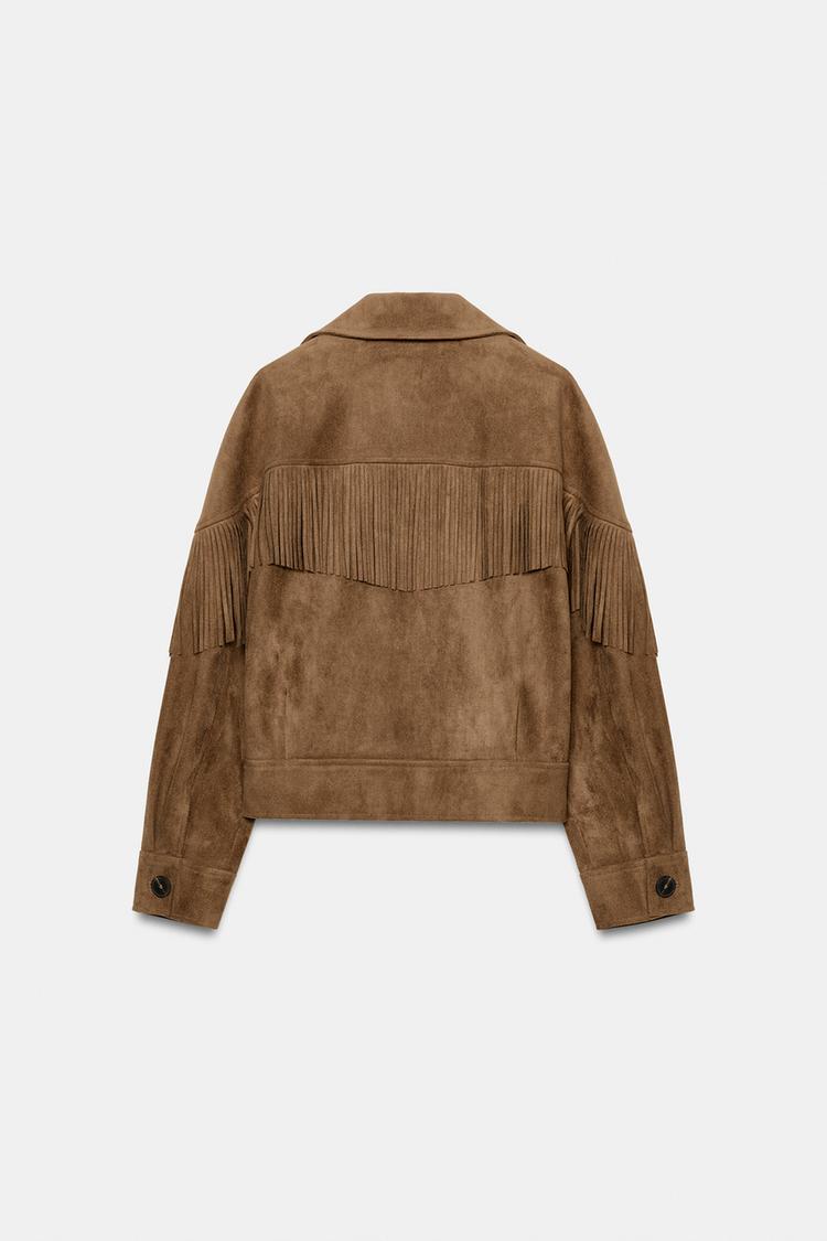 ZARA КУРТКА С БАХРОМОЙ ИЗ ИСКУССТВЕННОЙ ЗАМШИ, РЫЖЕВАТО-КОРИЧНЕВЫЙ