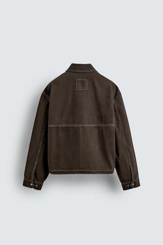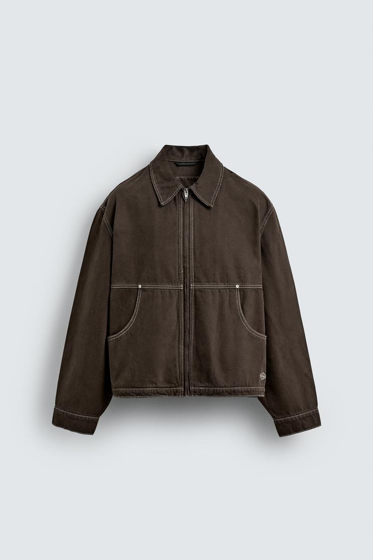 ZARA КУРТКА С ЭФФЕКТОМ ПОТЕРТОСТИ И КОНТРАСТНОЙ ОТСТРОЧКОЙ, КОРИЧНЕВЫЙ