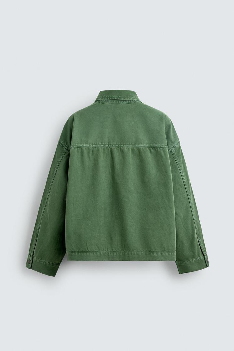 ZARA КУРТКА С ЭФФЕКТОМ ПОТЕРТОСТИ И НАШИВКАМИ, ЗЕЛЕНЫЙ