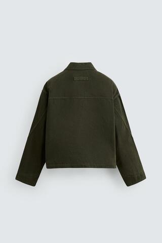ZARA КУРТКА С ЭФФЕКТОМ ПОТЕРТОСТИ СВОБОДНОГО КРОЯ, ТЕМНЫЙ ХАКИ