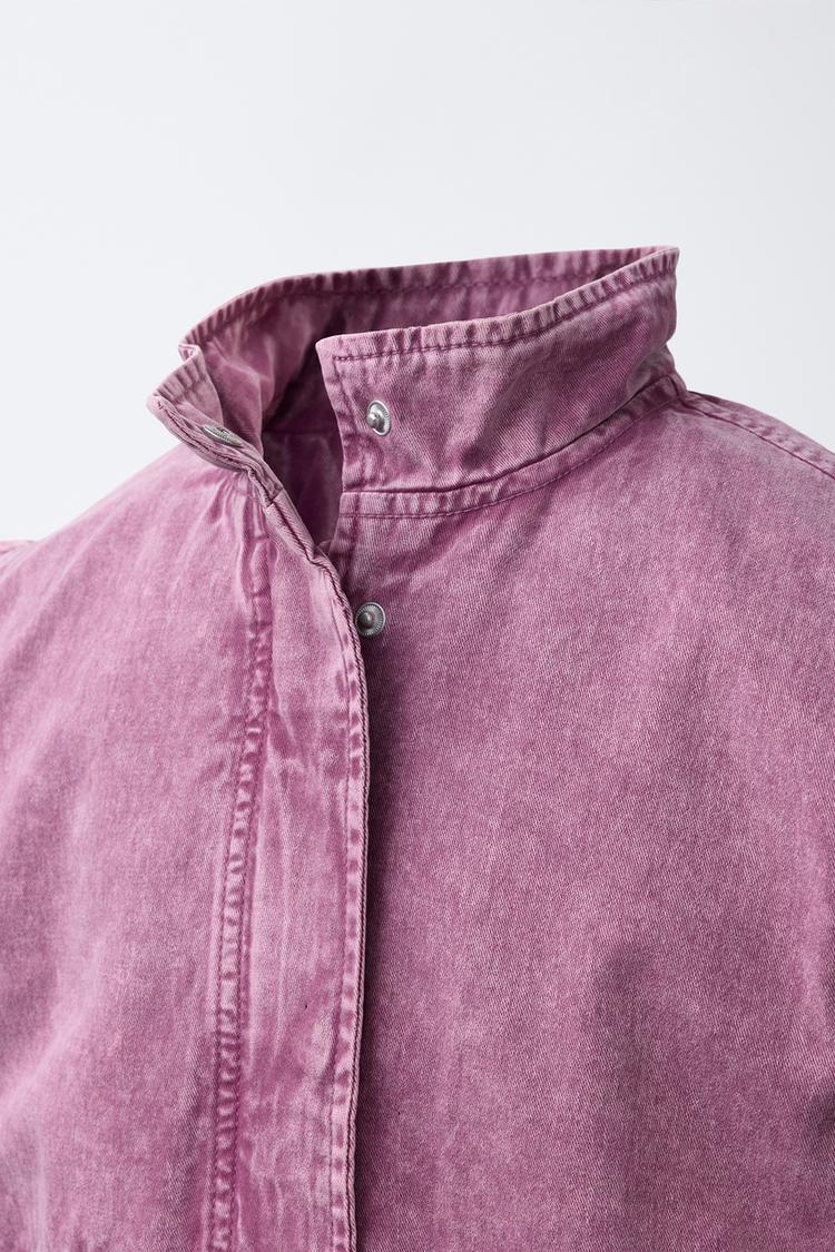 ZARA КУРТКА С ЭФФЕКТОМ ПОТЕРТОСТИ, ТЕМНО-РОЗОВЫЙ