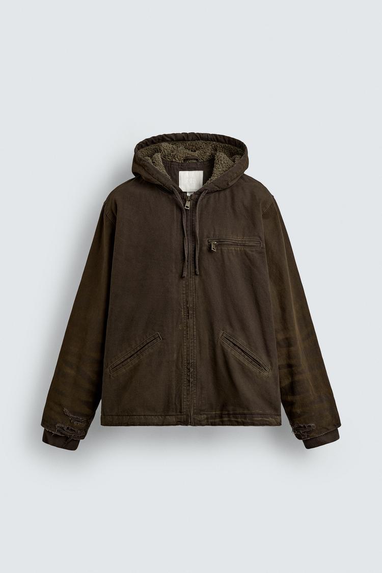 ZARA КУРТКА С ЭФФЕКТОМ ВИНТАЖНОЙ ПОТЕРТОСТИ, КОРИЧНЕВЫЙ