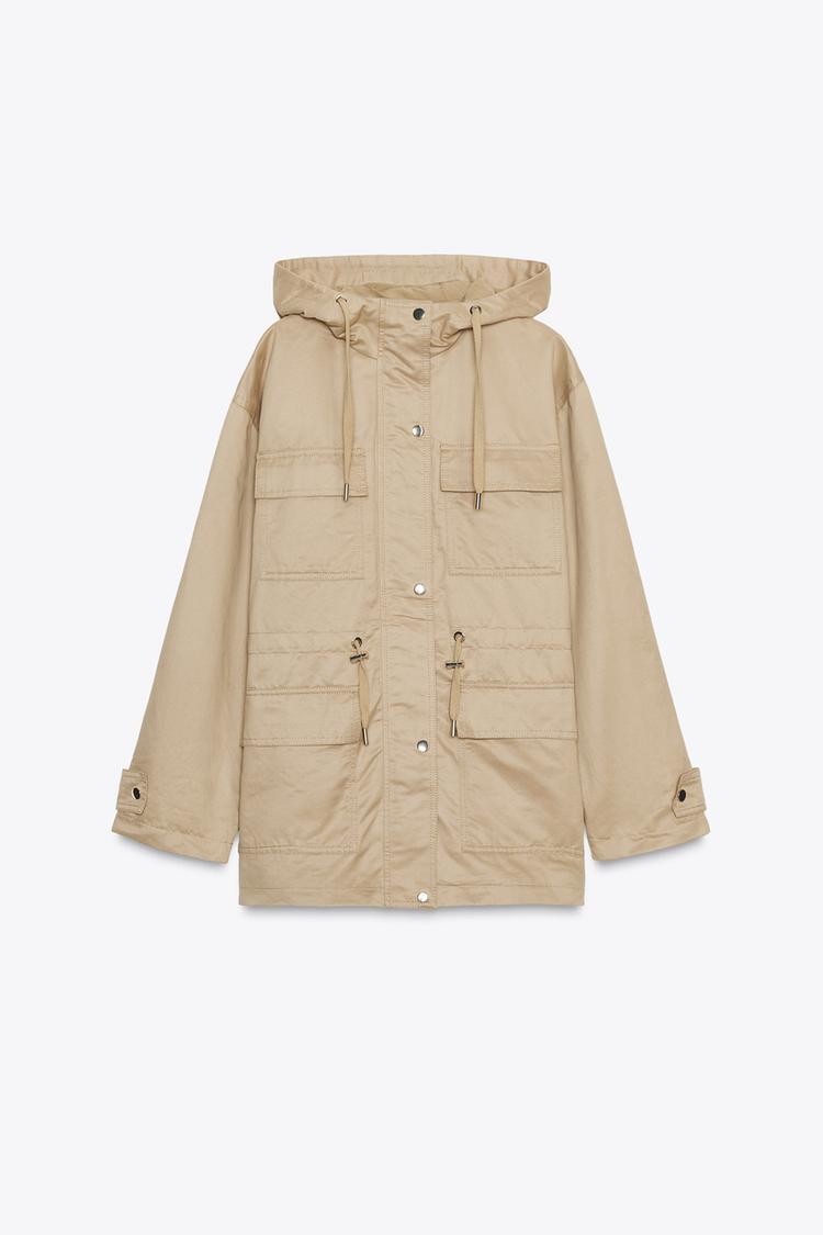 ZARA КУРТКА С КАПЮШОНОМ И МНОЖЕСТВОМ КАРМАНОВ, РЫЖЕВАТО-КОРИЧНЕВЫЙ