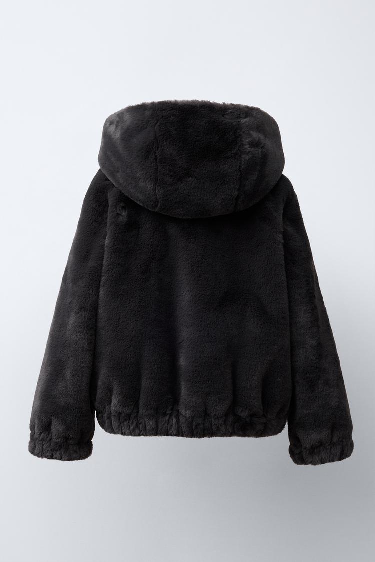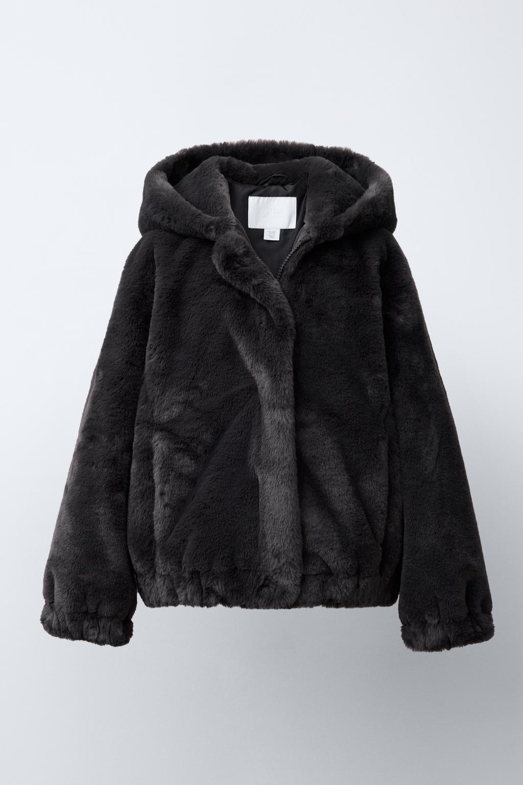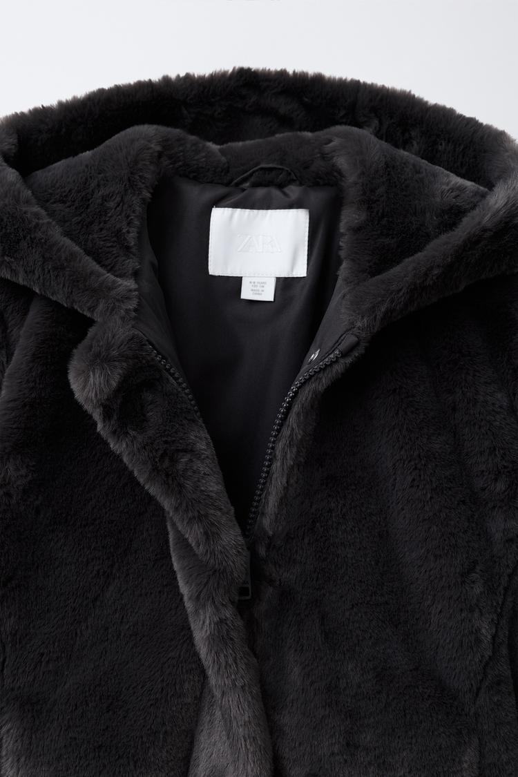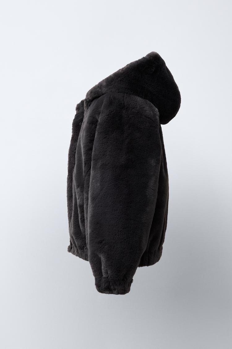 ZARA КУРТКА С КАПЮШОНОМ И ОТДЕЛКОЙ ПОД МЕХ, АНТРАЦИТОВО-СЕРЫЙ