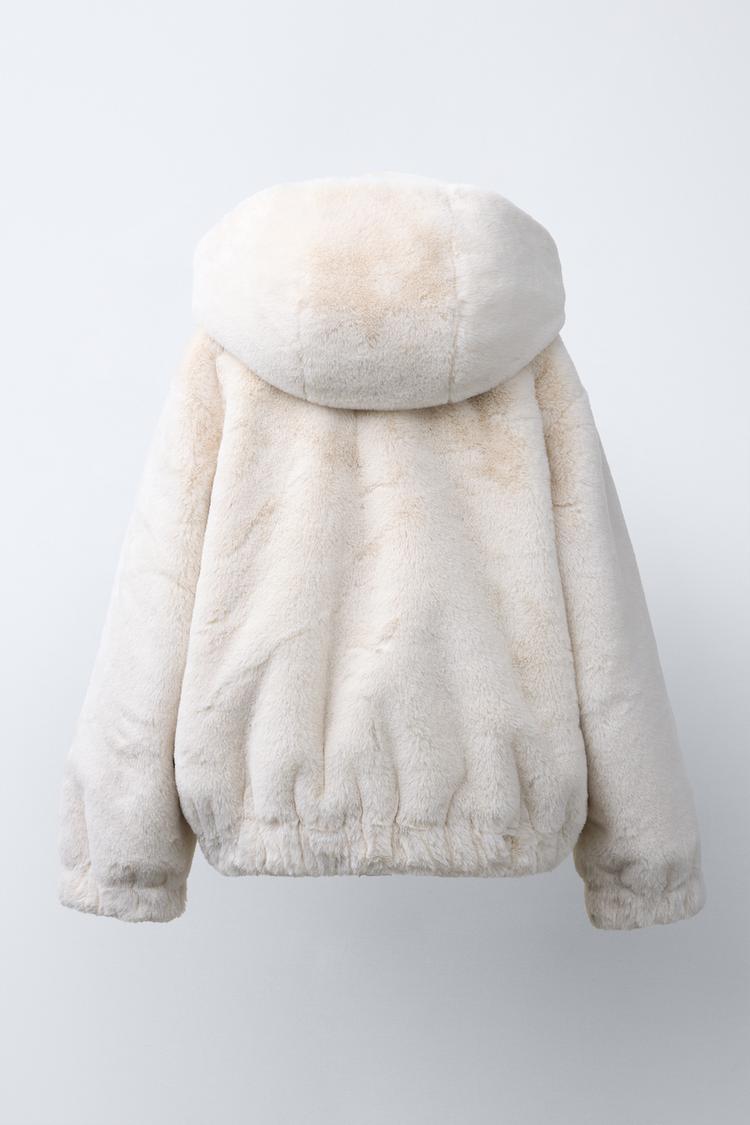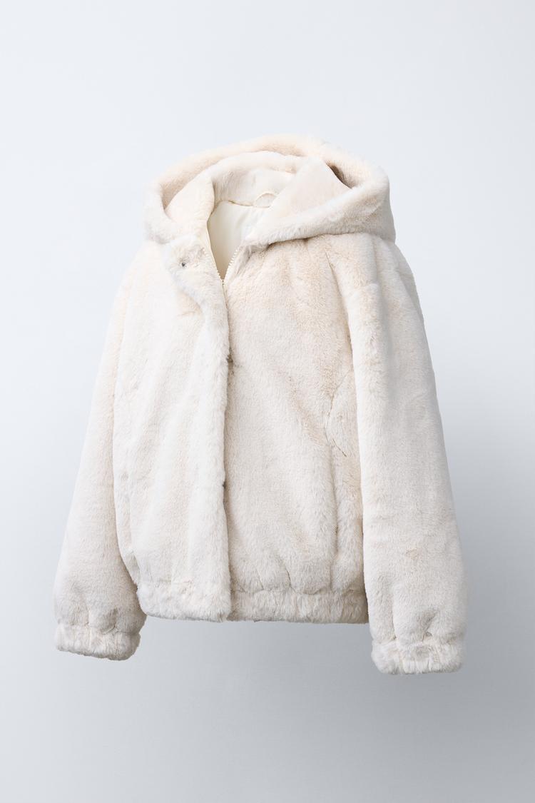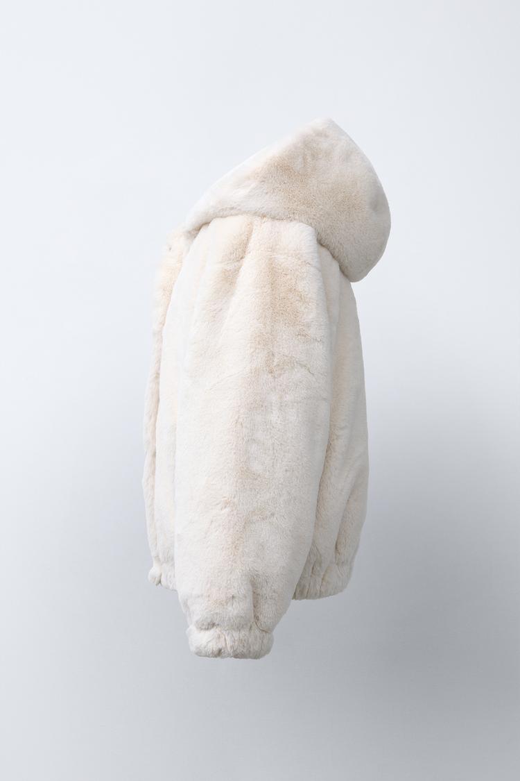 ZARA КУРТКА С КАПЮШОНОМ И ОТДЕЛКОЙ ПОД МЕХ, ЭКРЮ