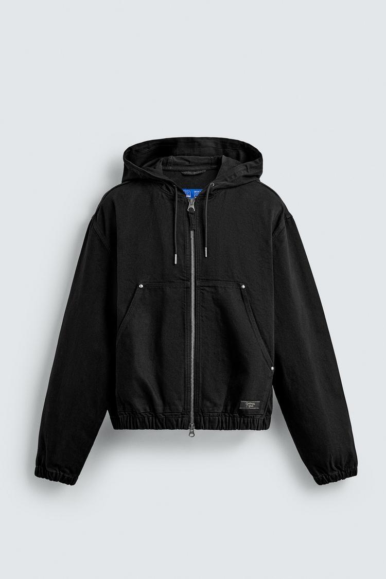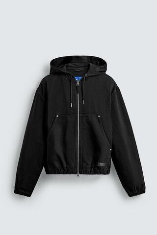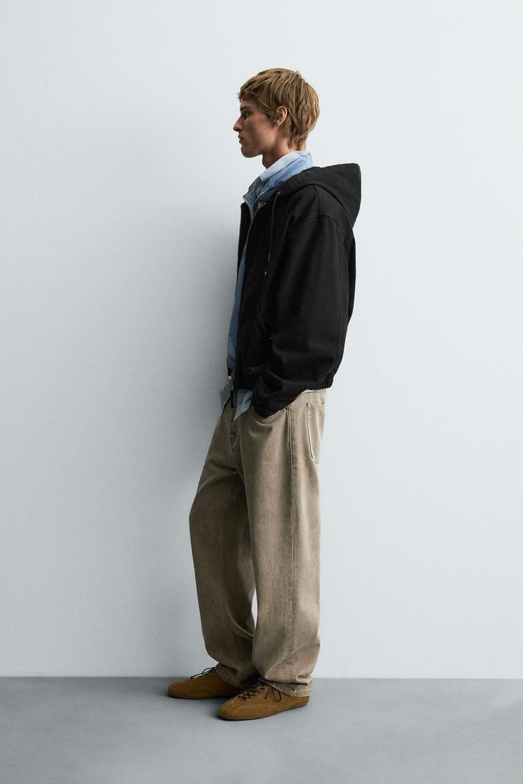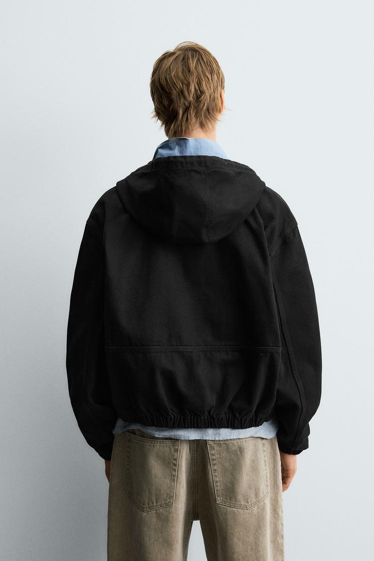 ZARA КУРТКА С КАПЮШОНОМ ИЗ ТКАНИ С ЭФФЕКТОМ ПОТЕРТОСТИ, ЧЕРНЫЙ