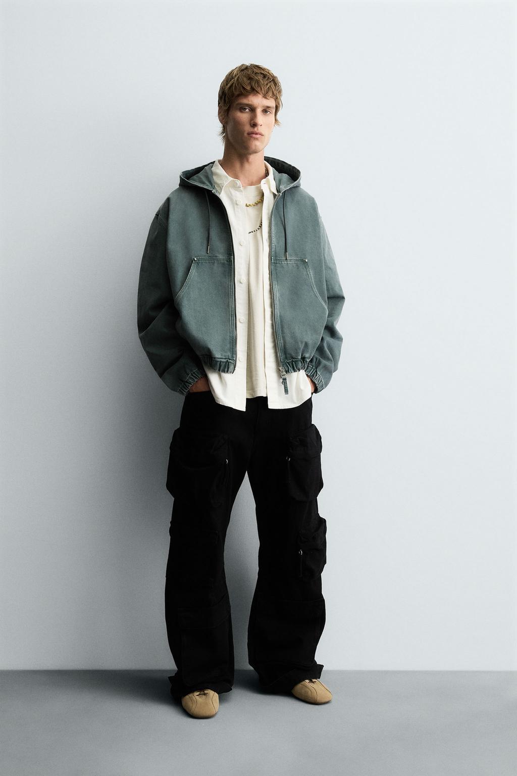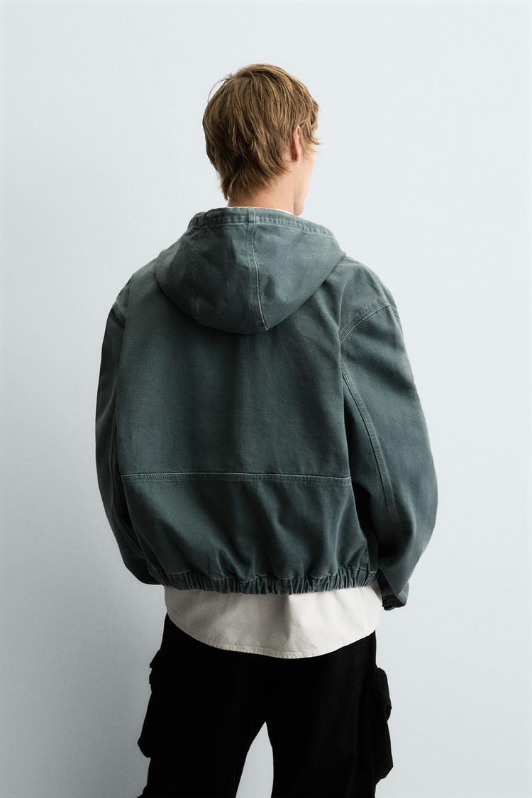 ZARA КУРТКА С КАПЮШОНОМ ИЗ ТКАНИ С ЭФФЕКТОМ ПОТЕРТОСТИ, ЛИНЯЛЫЙ ЗЕЛЕНЫЙ