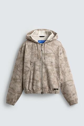 ZARA КУРТКА С КАПЮШОНОМ ИЗ ТКАНИ С ЭФФЕКТОМ ПОТЕРТОСТИ, РАЗНОЦВЕТНЫЙ