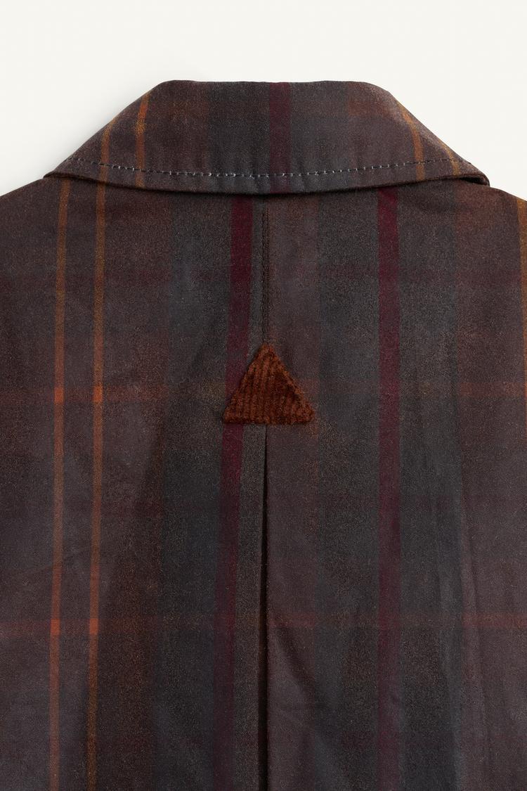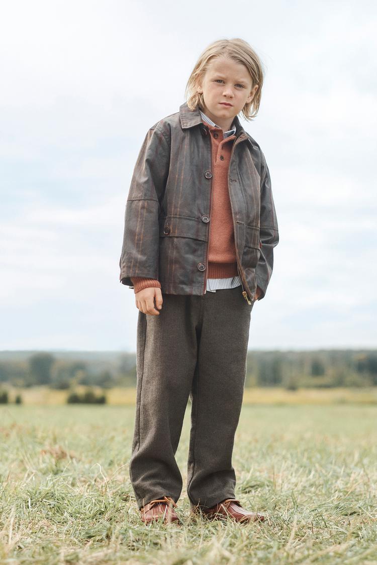 Куртка с длинным рукавом, рубашечным воротником и восковой отделкой. С внутренней скрытой передней молнией и пуговицами. С накладными карманами на клапанах и пуговицами. Подходящая подкладка.