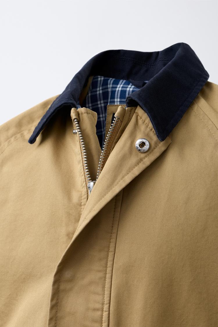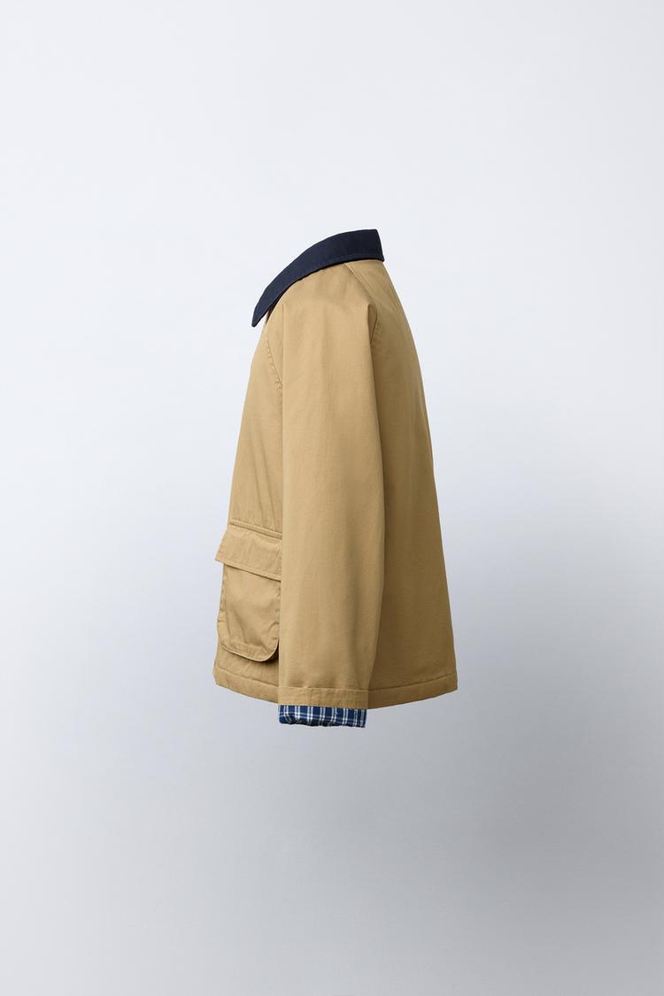 ZARA КУРТКА С КОНТРАСТНЫМ ВОРОТНИКОМ, РЫЖЕВАТО-КОРИЧНЕВЫЙ