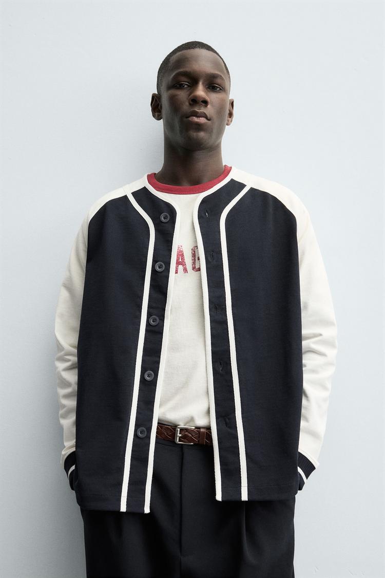 ZARA КУРТКА С ЦВЕТНЫМИ БЛОКАМИ, ЭКРЮ/ТЕМНО-СИНИЙ
