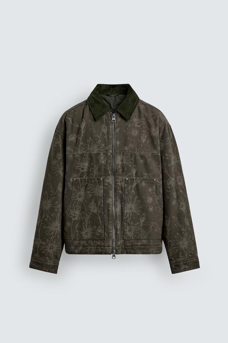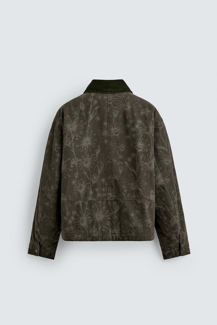 ZARA КУРТКА С ЦВЕТОЧНЫМ ПРИНТОМ, ТЕМНЫЙ ХАКИ