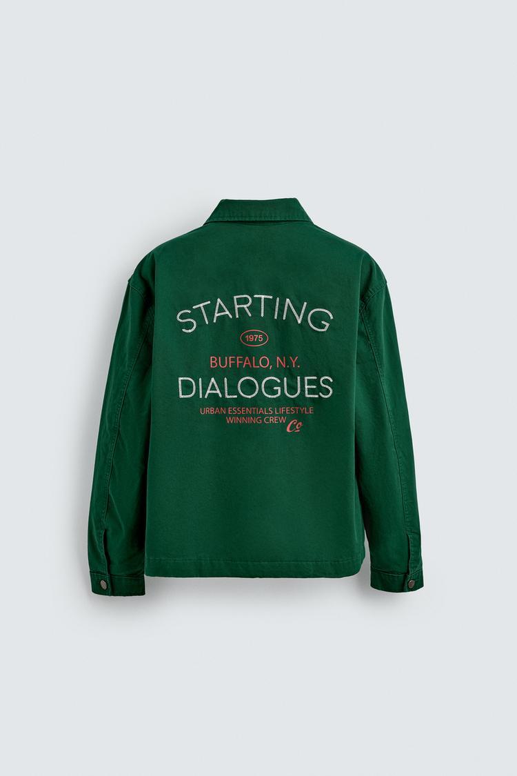 ZARA КУРТКА С ВЫШИВКОЙ И МОЛНИЕЙ, ЗЕЛЕНЫЙ