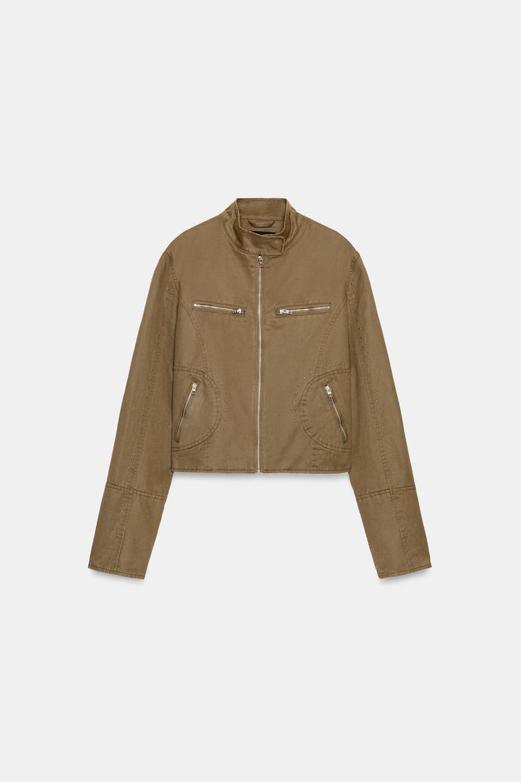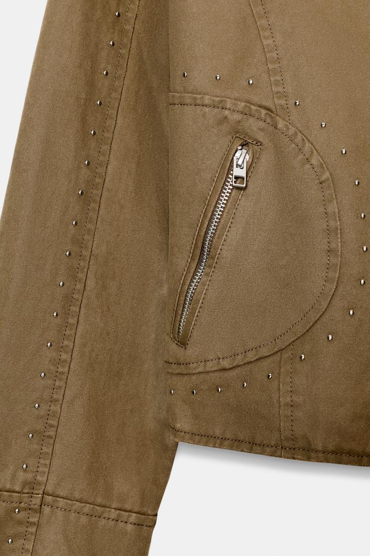 ZARA КУРТКА С ЗАКЛЕПКАМИ И ЭФФЕКТОМ ПОТЕРТОСТИ, СВЕТЛЫЙ ХАКИ