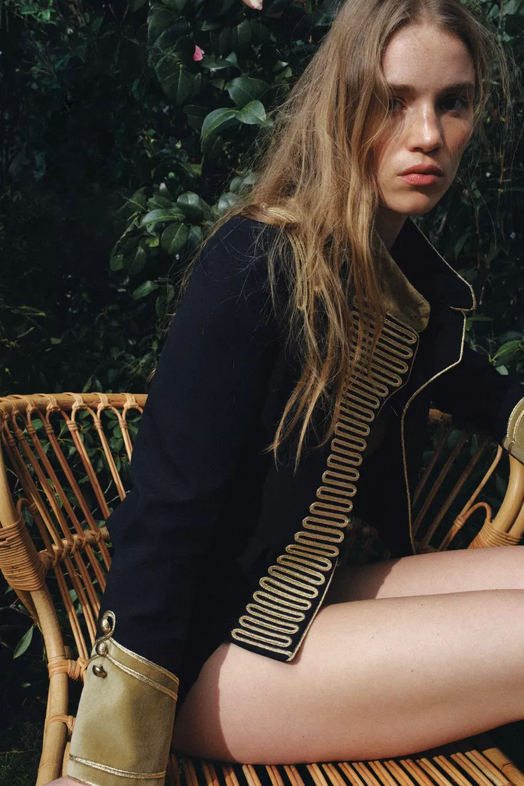 ZARA КУРТКА С ЗАСТЕЖКАМИ-АЛАМАРАМИ — ZW LIMITED EDITION, МОРСКОЙ ТЕМНО-СИНИЙ
