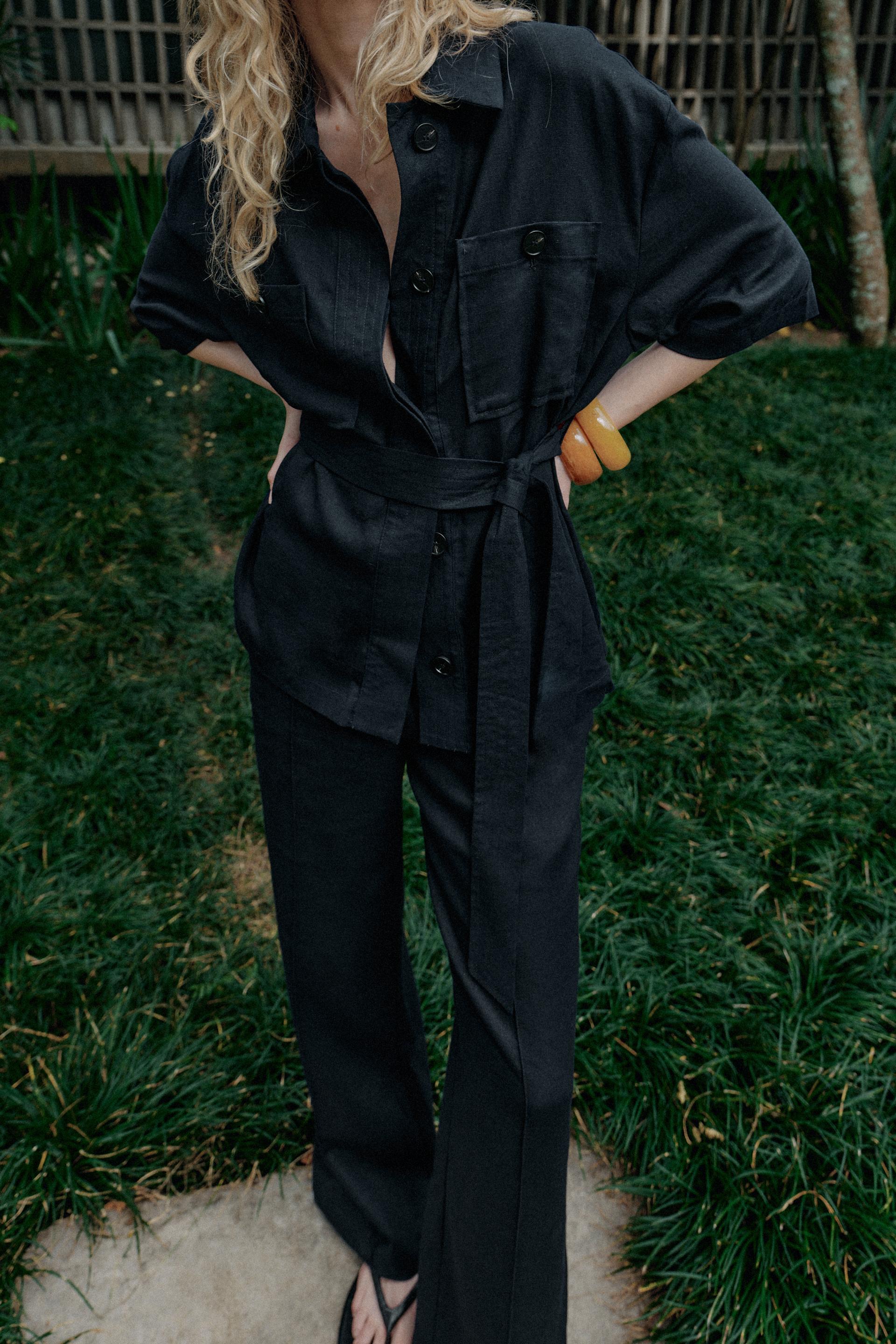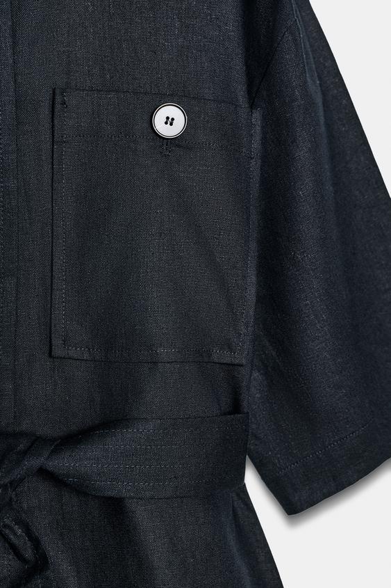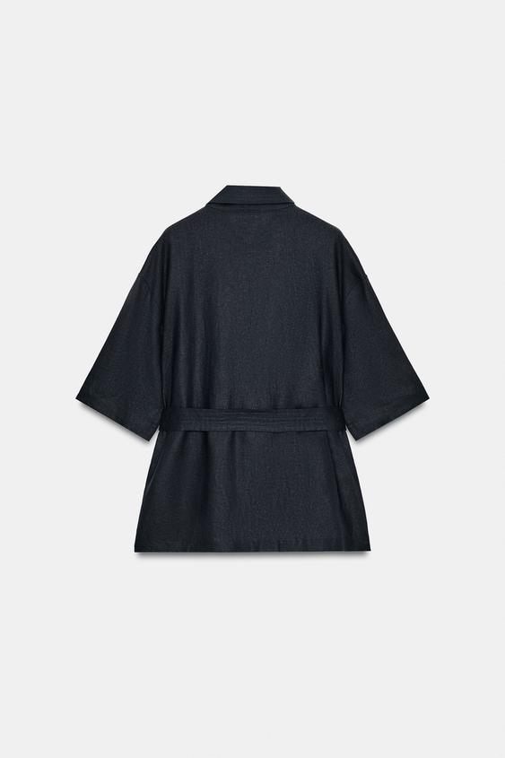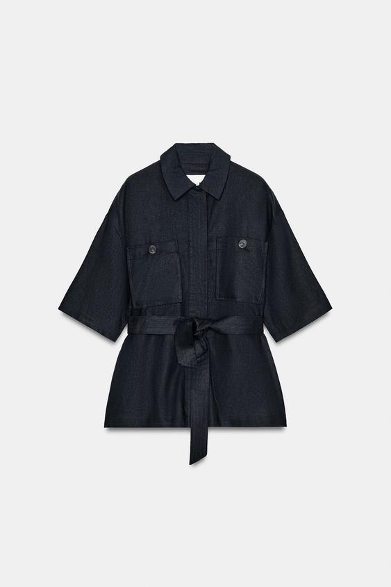 ZARA КУРТКА-САФАРИ ИЗ ЛЬНА С РЕМНЕМ, МОРСКОЙ СИНИЙ