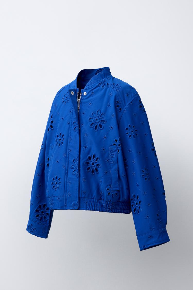 ZARA КУРТКА СО ШВЕЙЦАРСКОЙ ВЫШИВКОЙ, СИНИЙ