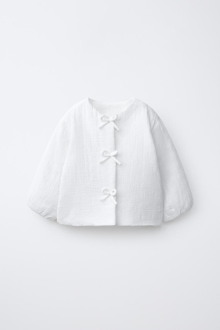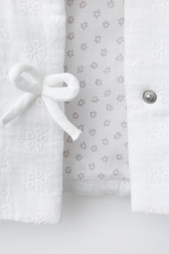 ZARA КУРТКА СО ШВЕЙЦАРСКОЙ ВЫШИВКОЙ, ЦВЕТ ВЫБЕЛЕННОГО ЛЬНА