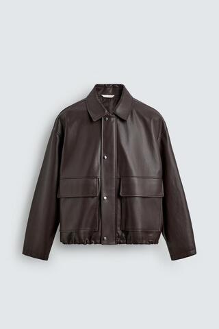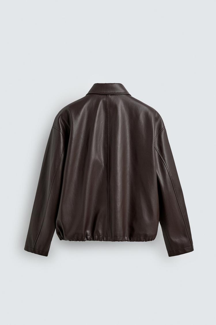 ZARA КУРТКА СВОБОДНОГО КРОЯ ИЗ ИСКУССТВЕННОЙ КОЖИ, ТЕМНО-КОРИЧНЕВЫЙ