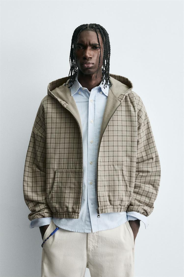 ZARA КУРТКА СВОБОДНОГО КРОЯ В КЛЕТКУ, БЕЖЕВЫЙ
