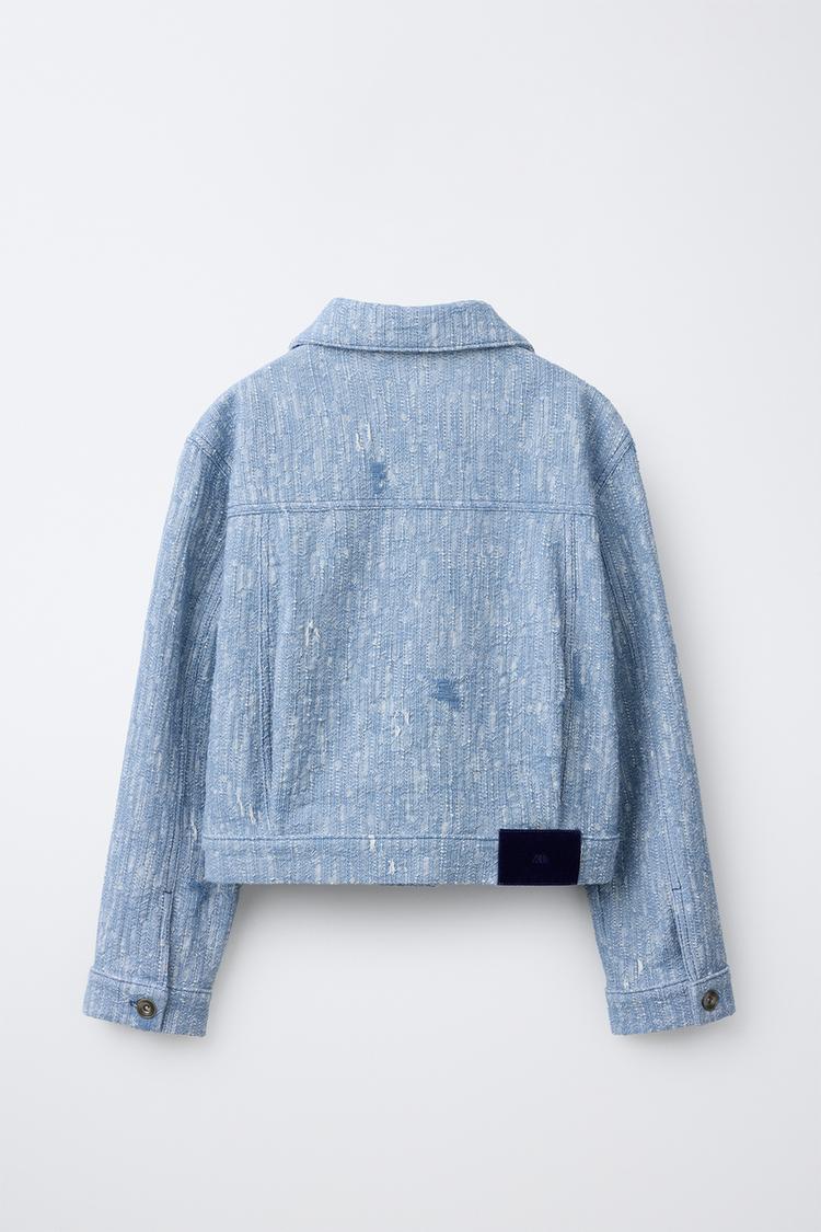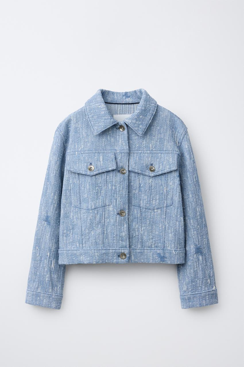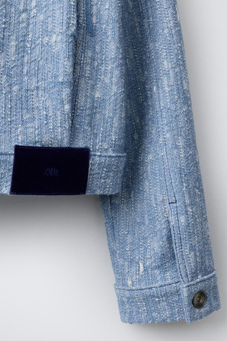 ZARA КУРТКА-ТРАКЕР ИЗ РЕЛЬЕФНОЙ ТКАНИ, СИНИЙ/БЕЛЫЙ