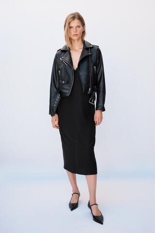 ZARA КУРТКА В БАЙКЕРСКОМ СТИЛЕ ИЗ ИСКУССТВЕННОЙ КОЖИ, ЧЕРНЫЙ
