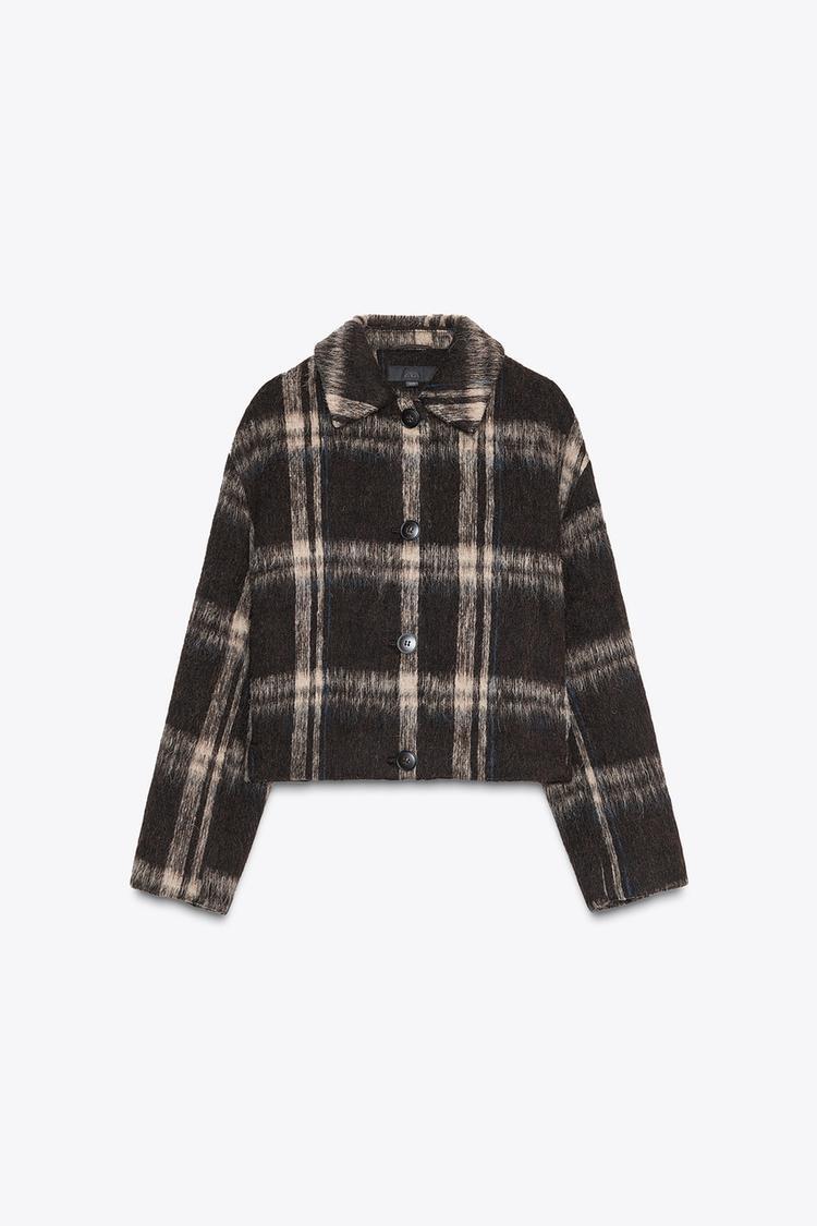 ZARA КУРТКА В КЛЕТКУ ИЗ ТКАНИ С 30% ШЕРСТИ, ЧЕРНЫЙ