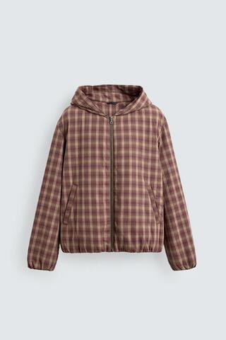 ZARA КУРТКА В КЛЕТКУ С КАПЮШОНОМ, КРАСНОВАТЫЙ