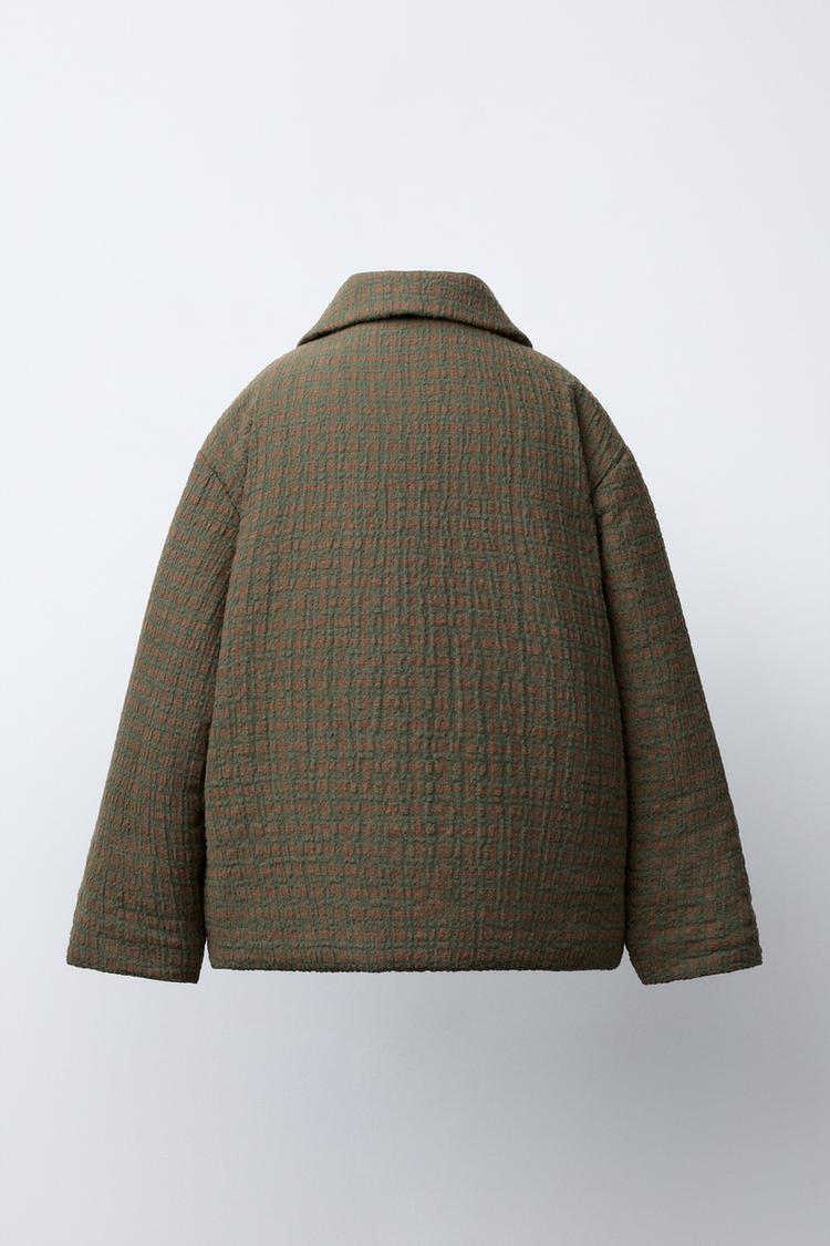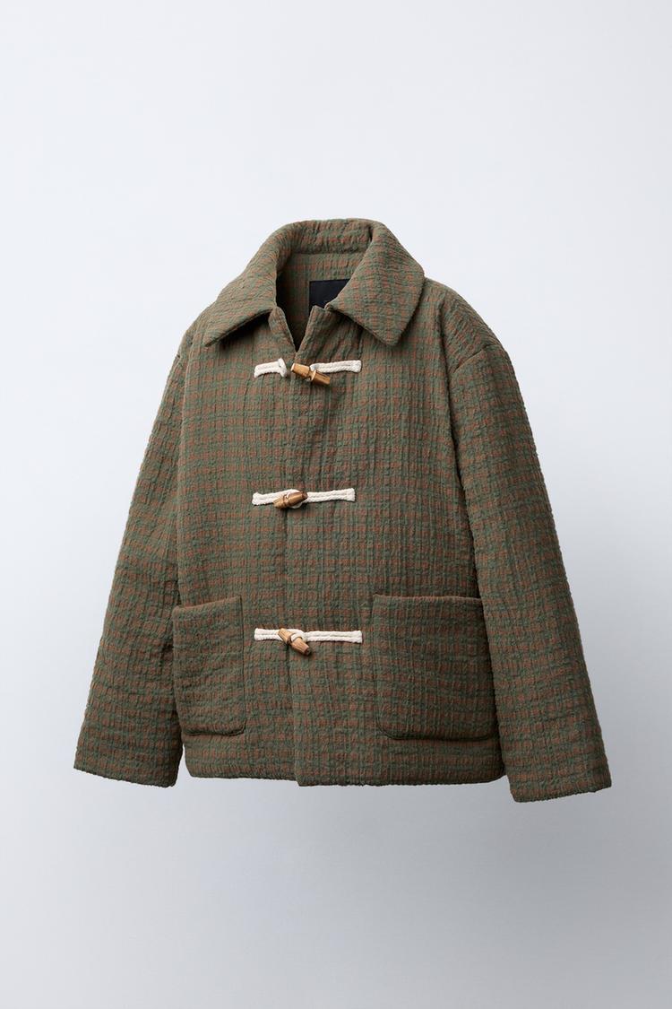 ZARA КУРТКА В КЛЕТКУ С ЗАСТЕЖКАМИ-ТОГГЛ, ОЛИВКОВЫЙ