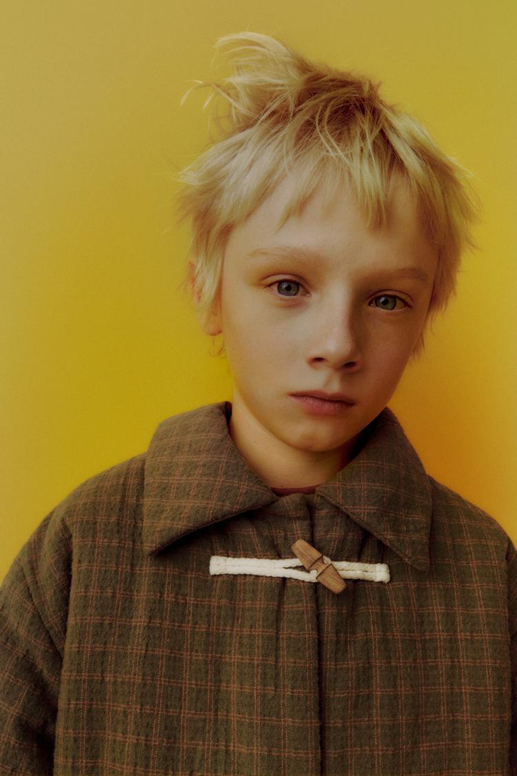 Куртка с воротником и длинными рукавами. Накладные передние карманы, принт в клетку, застежки-тоггл спереди.