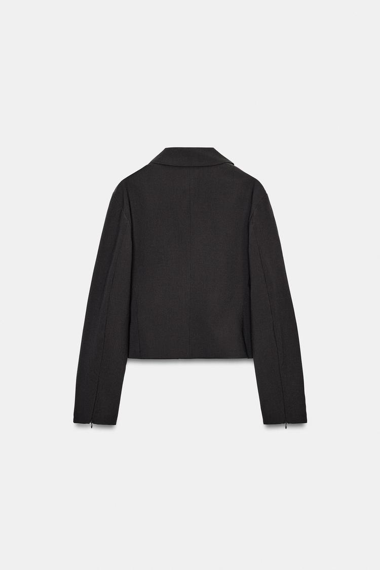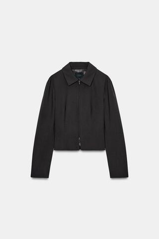 Приталенная куртка с отложным воротником и длинными рукавами со скрытыми молниями. Декоративная строчка. Внутренняя подкладка. Застежка-молния с двойным бегунком.