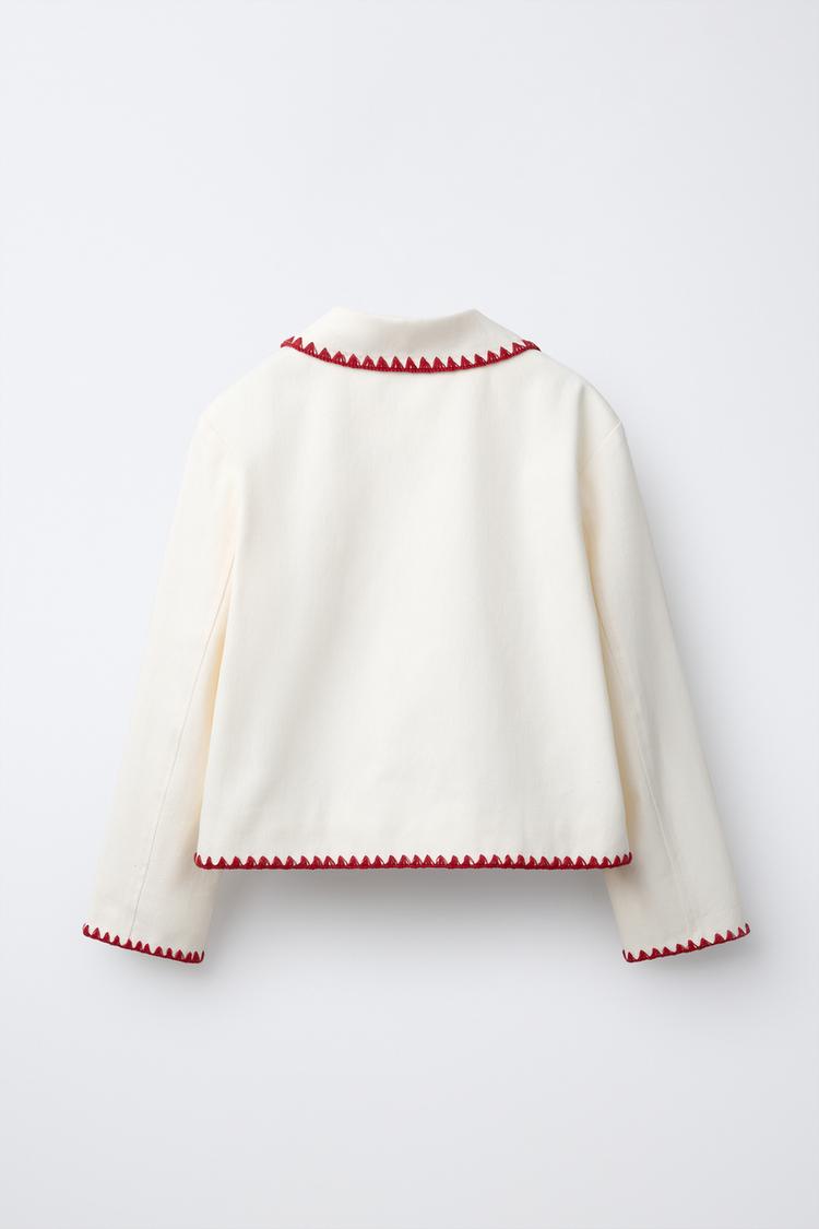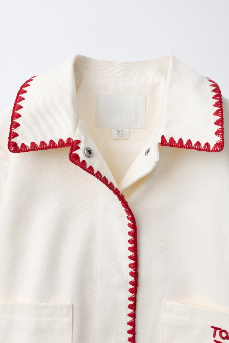 ZARA КУРТКА WORKER С ВЫШИВКОЙ, ЭКРЮ/КРАСНЫЙ