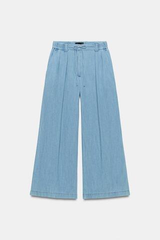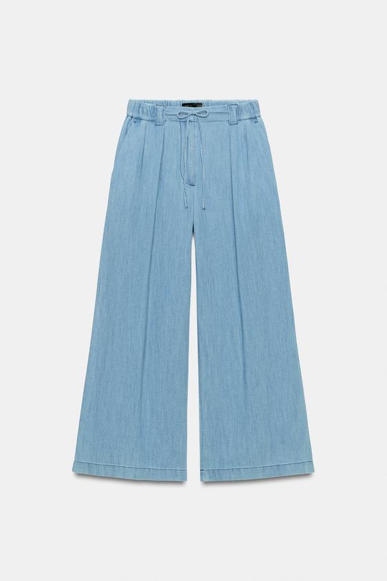 ZARA КЮЛОТЫ ИЗ СТРУЯЩЕЙСЯ ТКАНИ, СИНИЙ