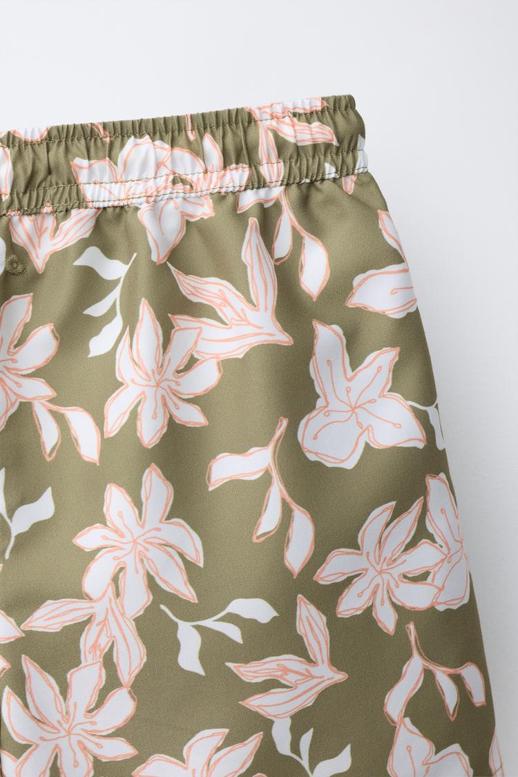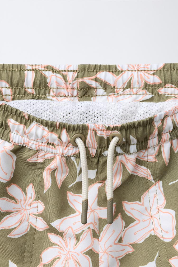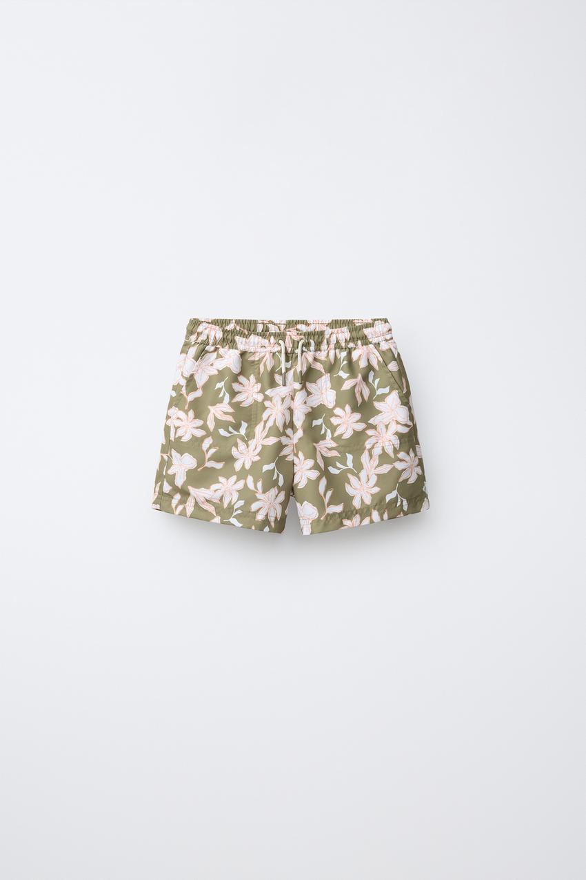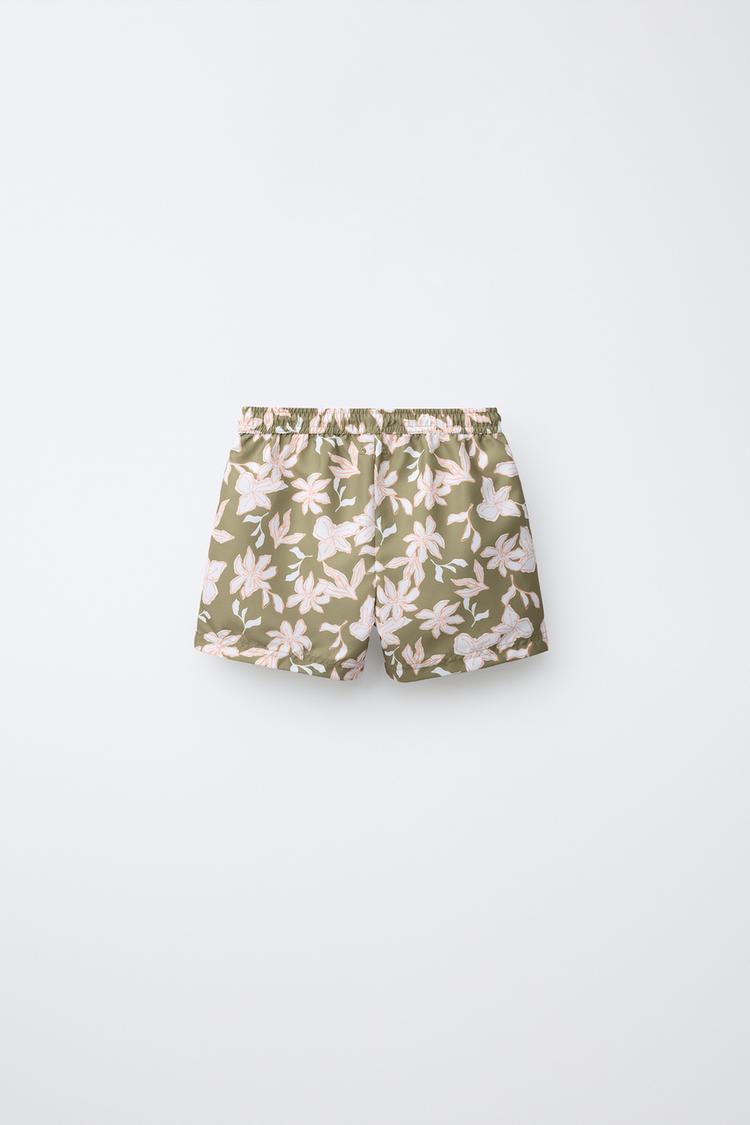 ZARA ПЛАВКИ-БЕРМУДЫ С ЦВЕТОЧНЫМ ПРИНТОМ, ЗЕЛЕНОВАТЫЙ