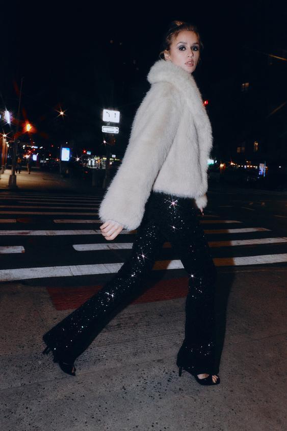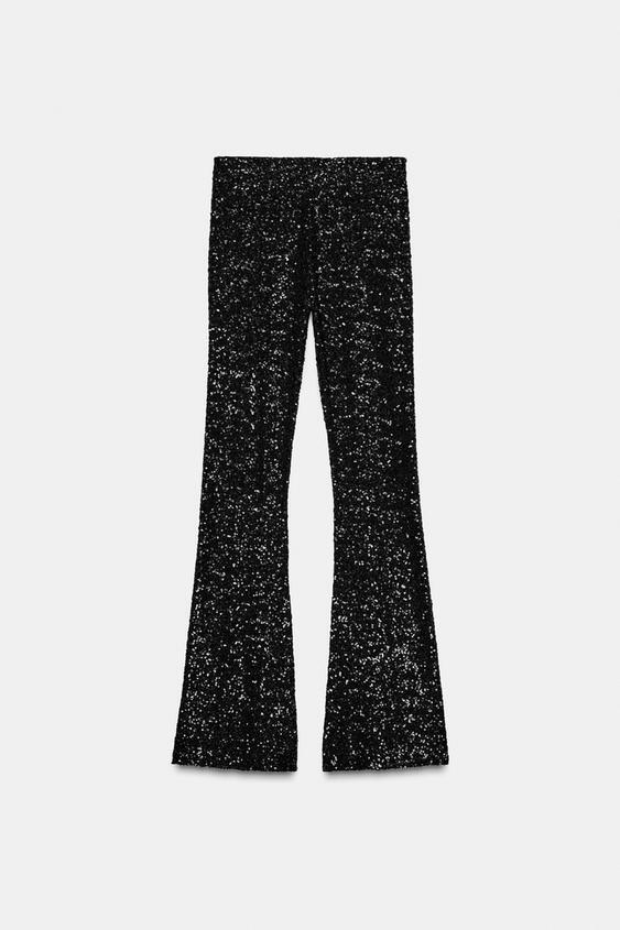ZARA ЛЕГИНСЫ FLARE С ПАЙЕТКАМИ, ЧЕРНЫЙ