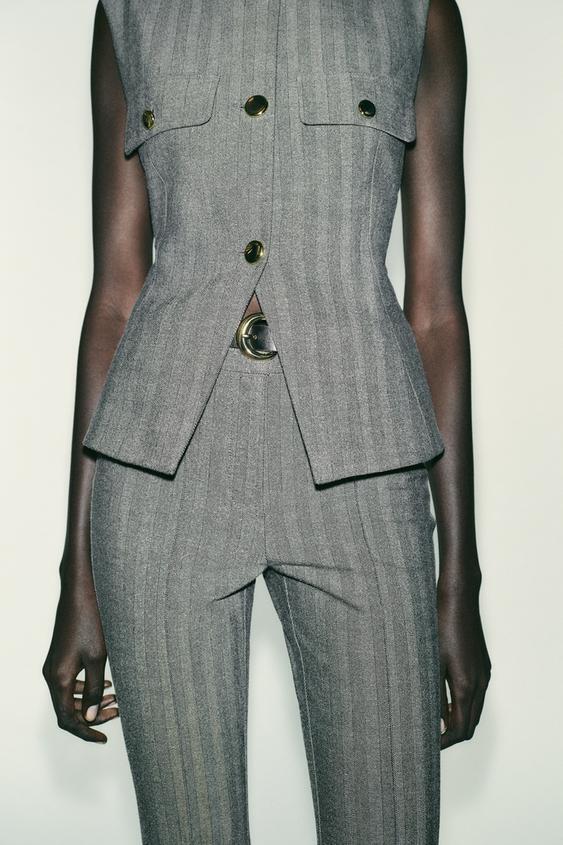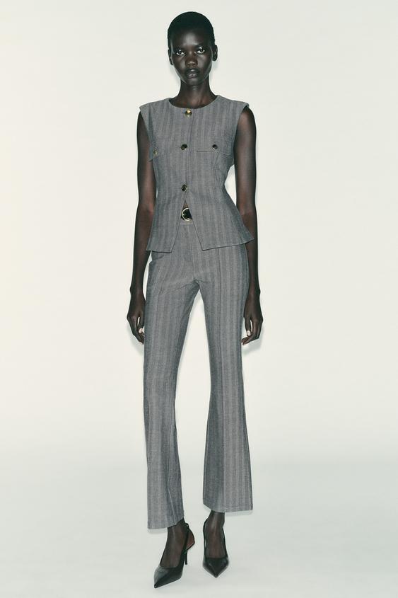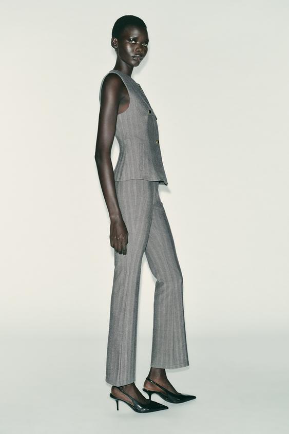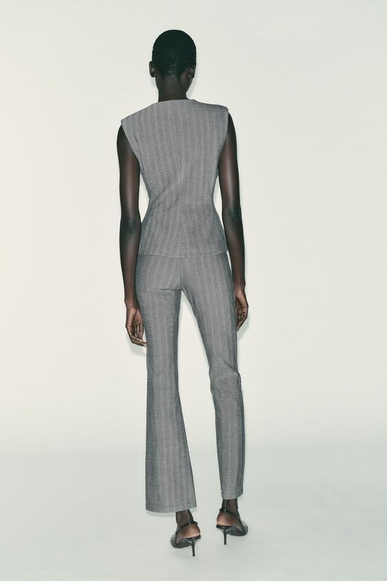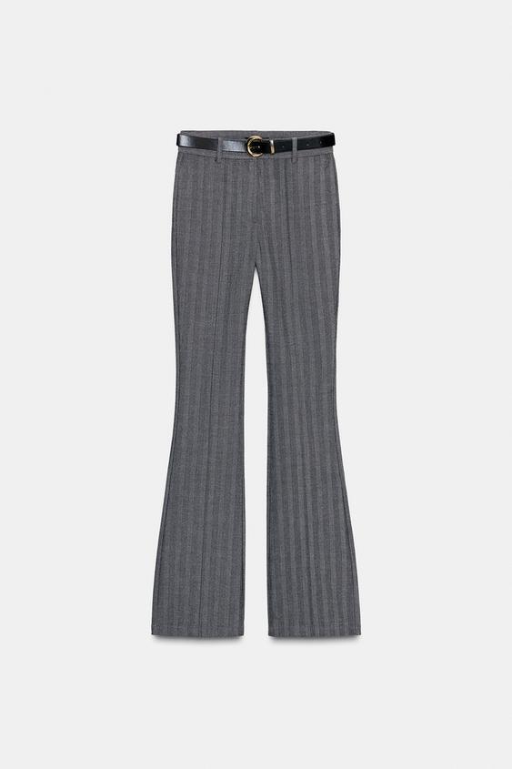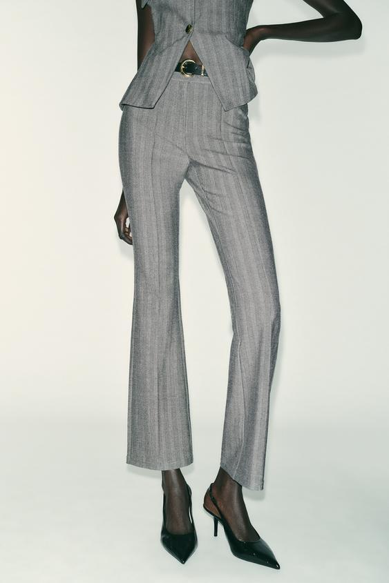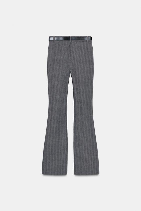ZARA ЛЕГИНСЫ FLARE В ЕЛОЧКУ С РЕМНЕМ, СЕРЫЙ