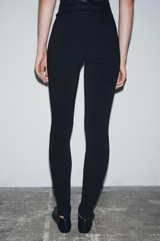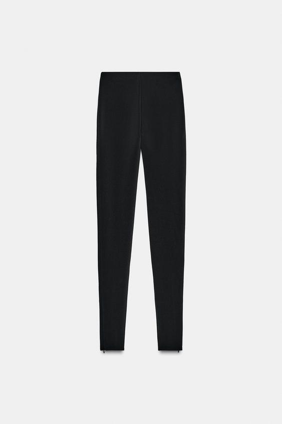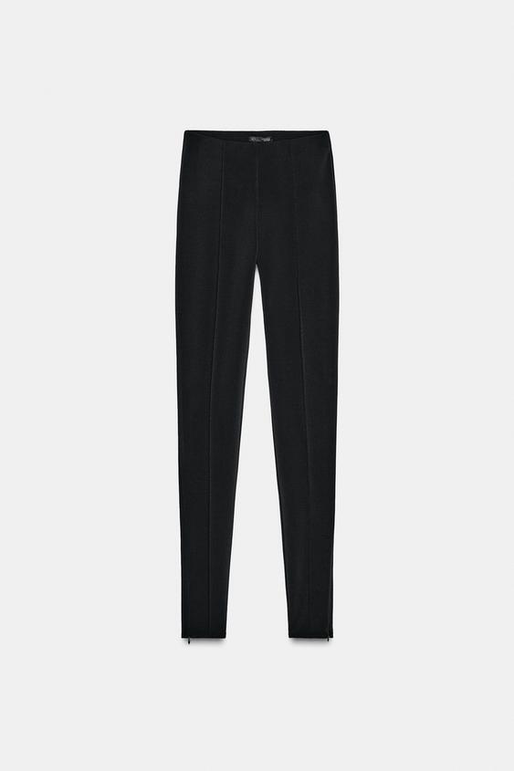ZARA ЛЕГИНСЫ ИЗ КРЕПА С МОЛНИЕЙ, ЧЕРНЫЙ