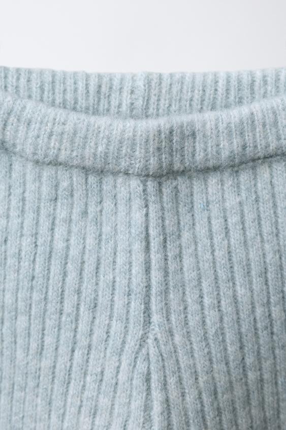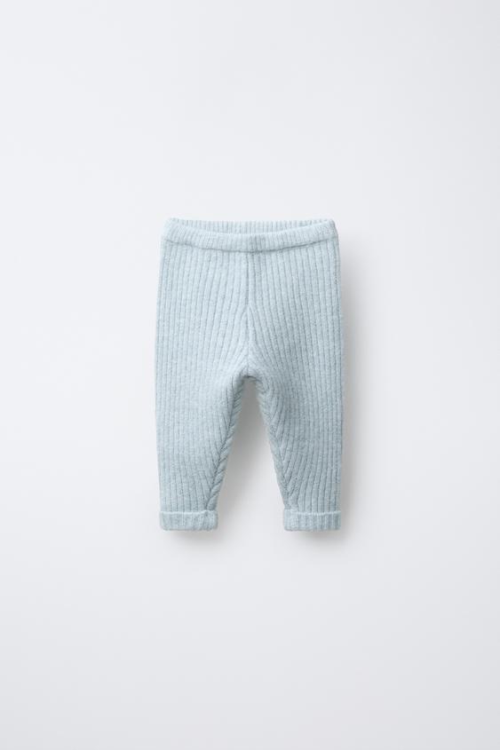 ZARA ЛЕГИНСЫ ИЗ РУБЧАТОГО ТРИКОТАЖА, ВОДЯНИСТО-ЗЕЛЕНЫЙ