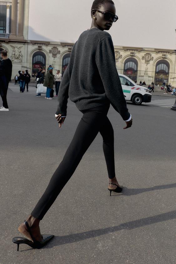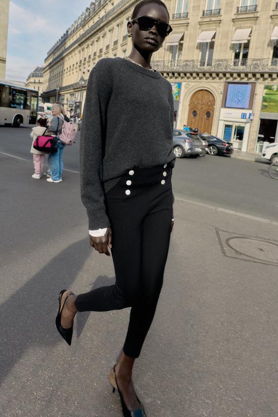 ZARA ЛЕГИНСЫ С ДЕКОРАТИВНЫМИ ПУГОВИЦАМИ, ЧЕРНЫЙ