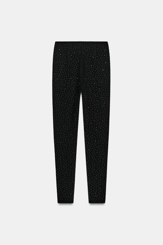 Легинсы с высокой посадкой и эластичной талией. Ткань с блестящими бусинами.
