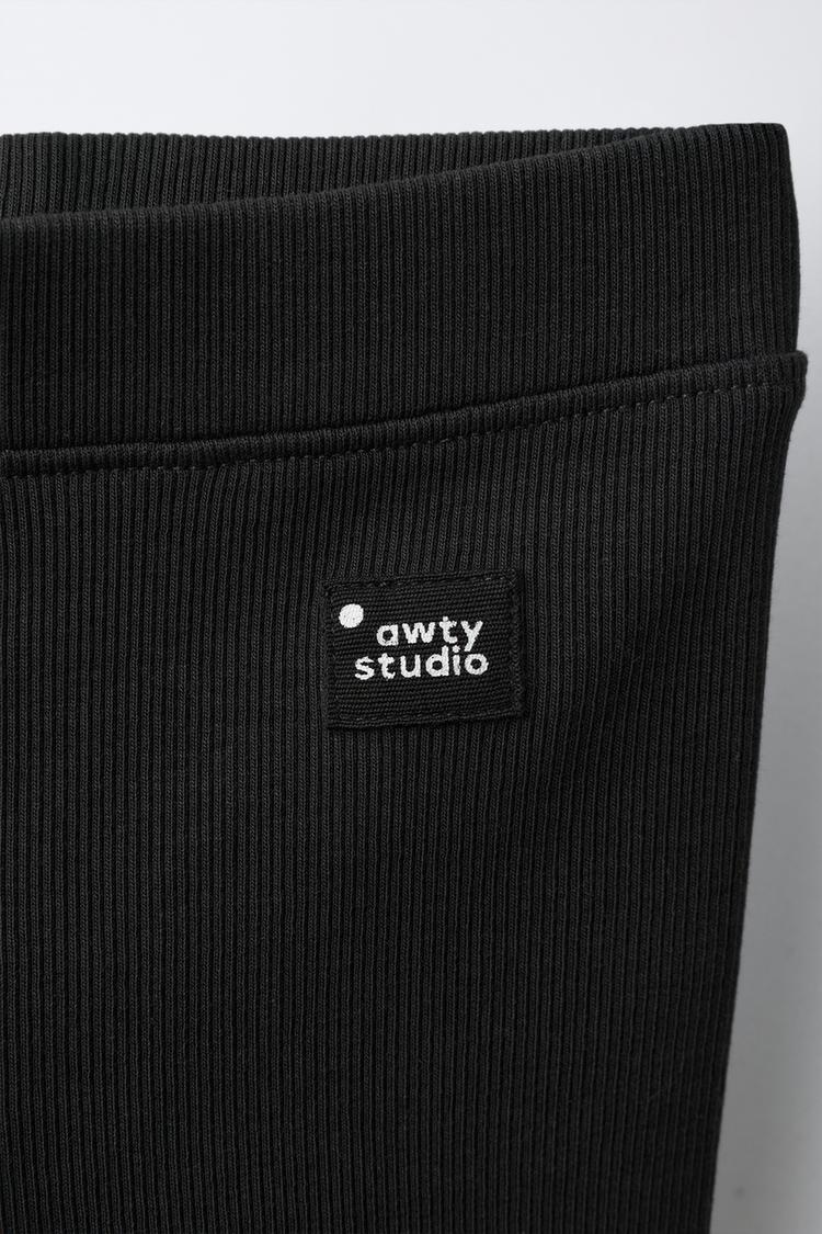 Легинсы в рубчик с эластичным поясом и нашивкой спереди.