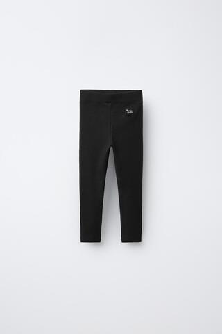 ZARA ЛЕГИНСЫ В РУБЧИК С НАШИВКОЙ, ЧЕРНЫЙ