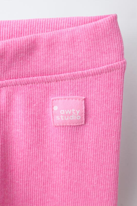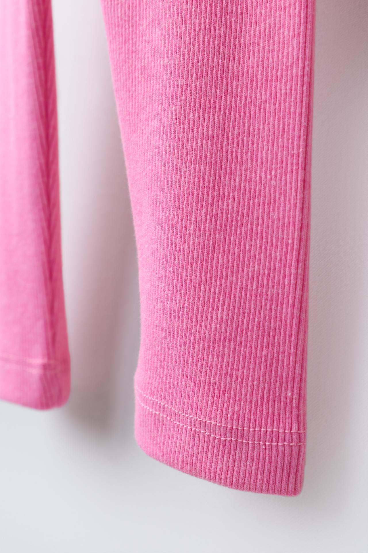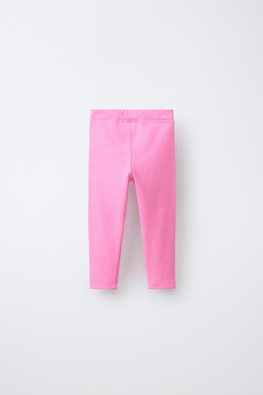 ZARA ЛЕГИНСЫ В РУБЧИК С НАШИВКОЙ, НЕОНОВЫЙ РОЗОВЫЙ