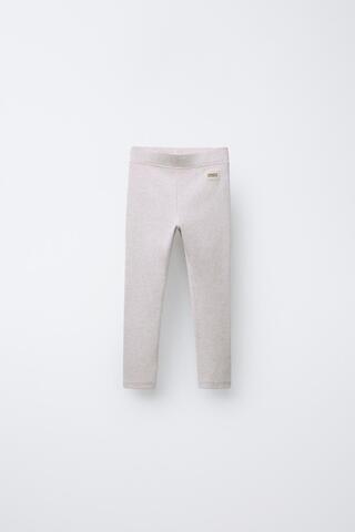 ZARA ЛЕГИНСЫ В РУБЧИК С НАШИВКОЙ, ПЕСОЧНЫЙ МЕЛАНЖ