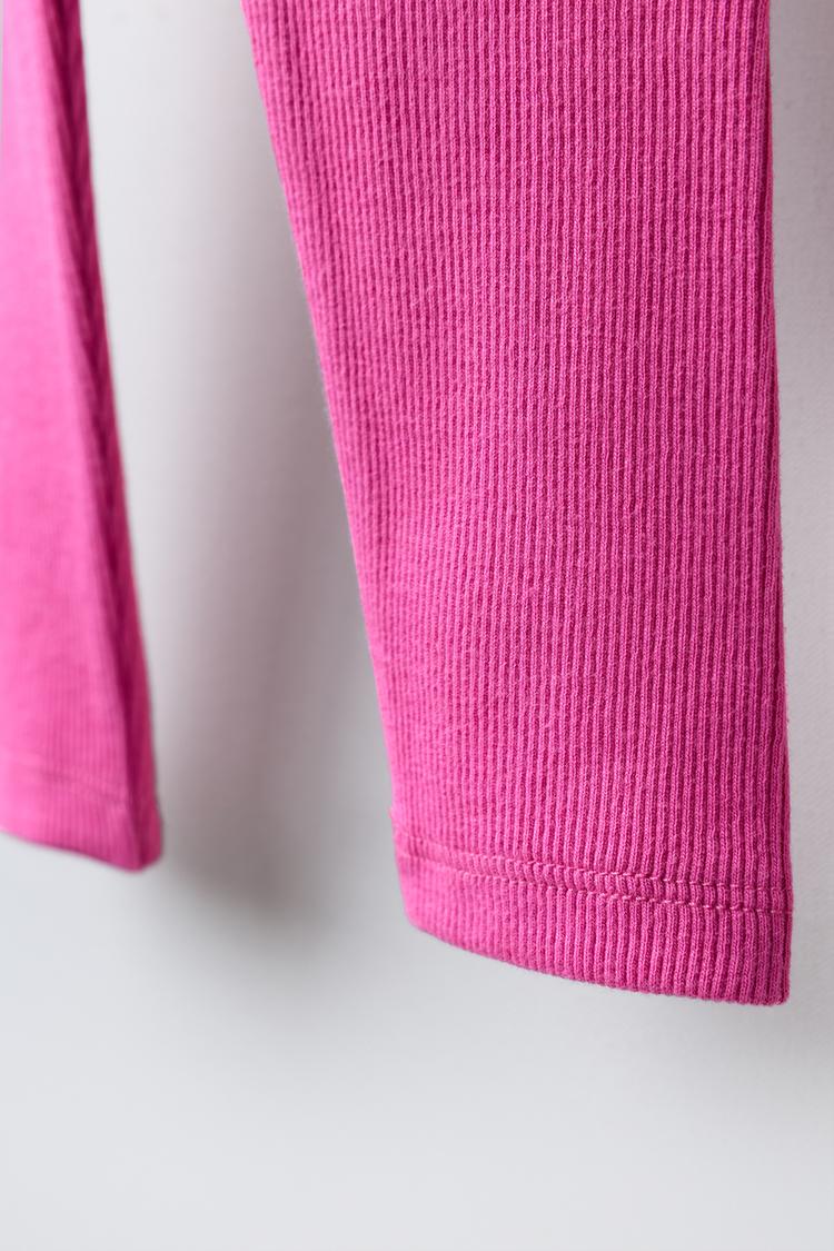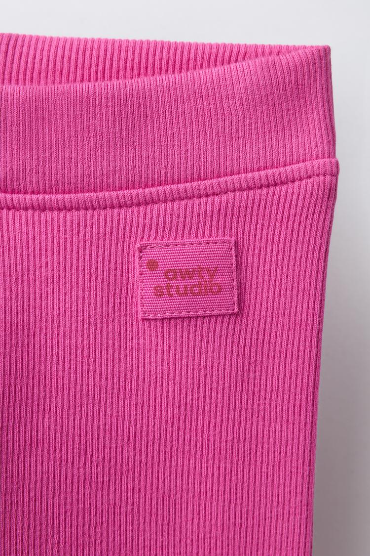 ZARA ЛЕГИНСЫ В РУБЧИК С НАШИВКОЙ, ЦВЕТ ФУКСИИ